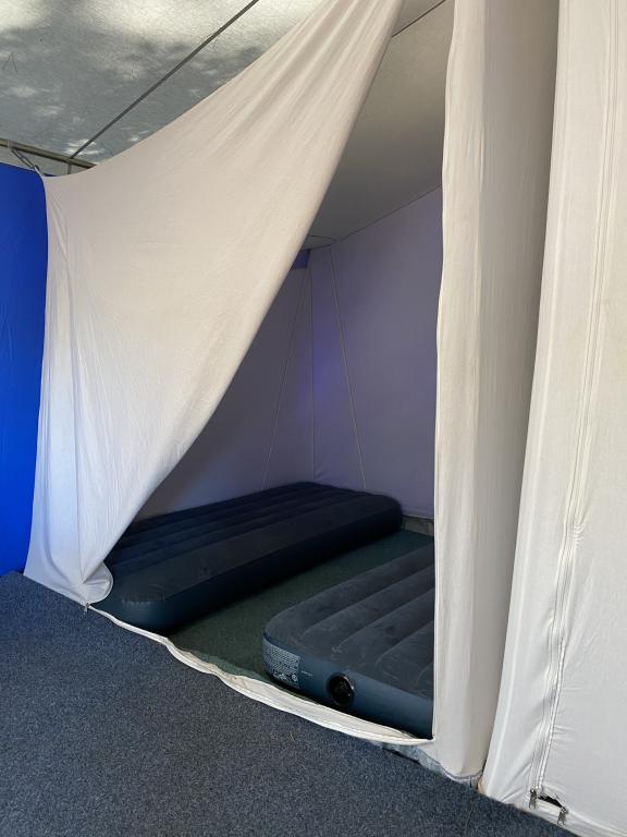 Geschlafen wird in geräumigen Vier-Personen-Zelten mit rund 20 Quadratmetern Fläche. Die Zelte sind in Schlafkabinen unterteilt und mit bequemen Velourbetten ausgestattet – damit auch nach aktiven Tagen am Meer ausreichend Erholung möglich ist.
